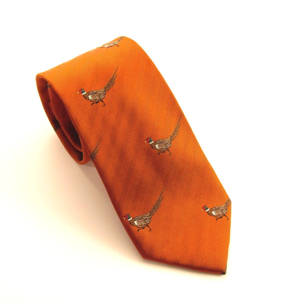 Van Buck - Mens - Orange Running Pheasant Country Silk Tie - Wildvine Clothing, Spalding, Lincolnshire